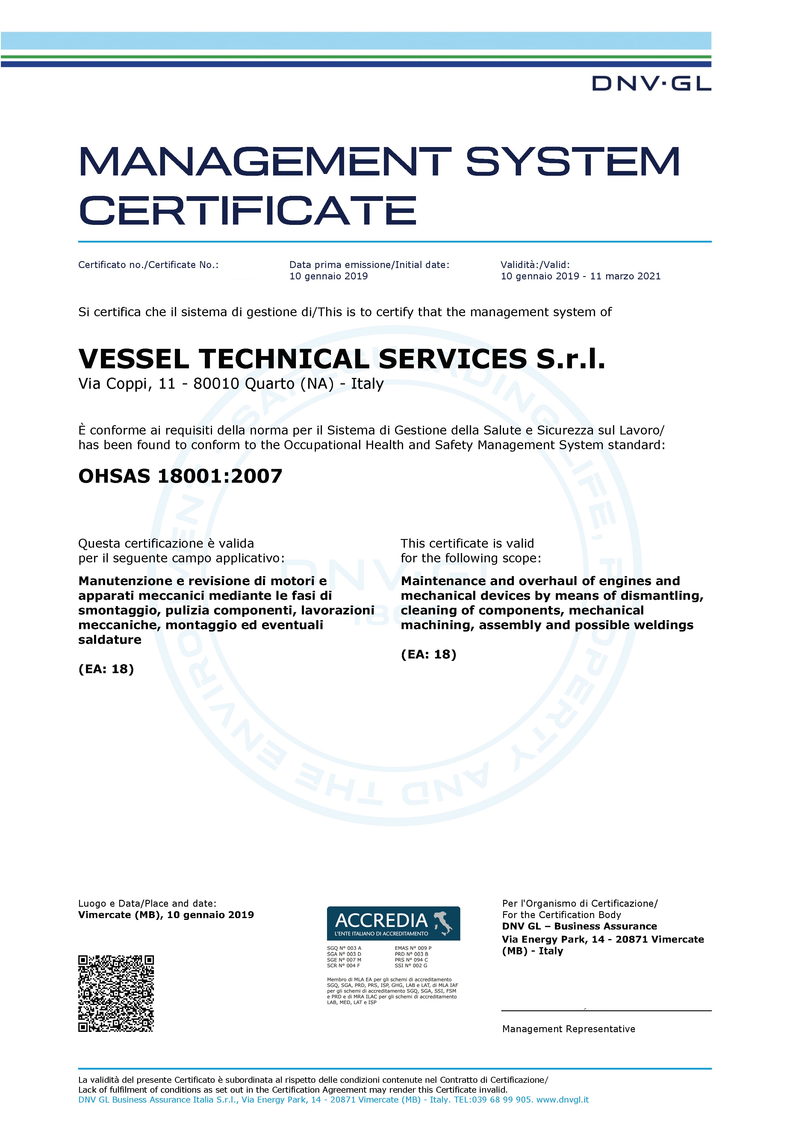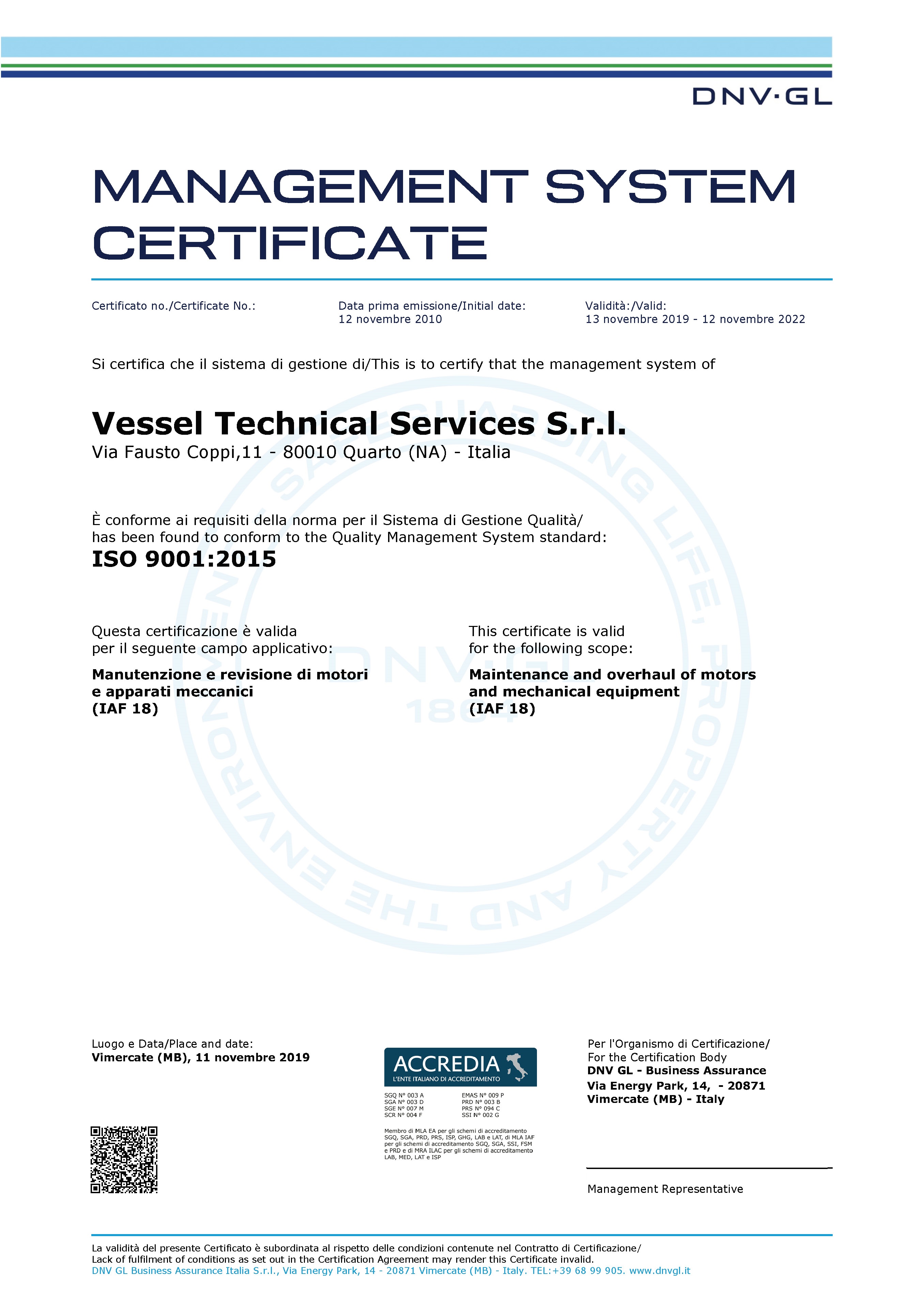 All the variety of services and processes provided by Vessel Technical Services (VTS) are based on a Quality Management System and Health & Safety Management System in compliance with the national and international industry regulations and standards.