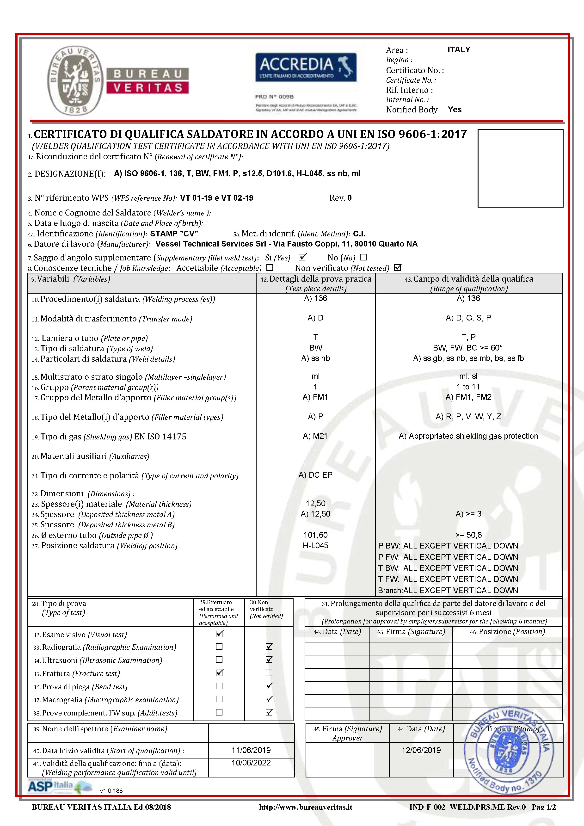 VTS’s staff has the skills, training and qualifications needed to provide tailored solutions to the variety of customer’s needs and expectations. Special processes are carried out by VTS srl with the greatest expertise, according to European standards and to American codes.